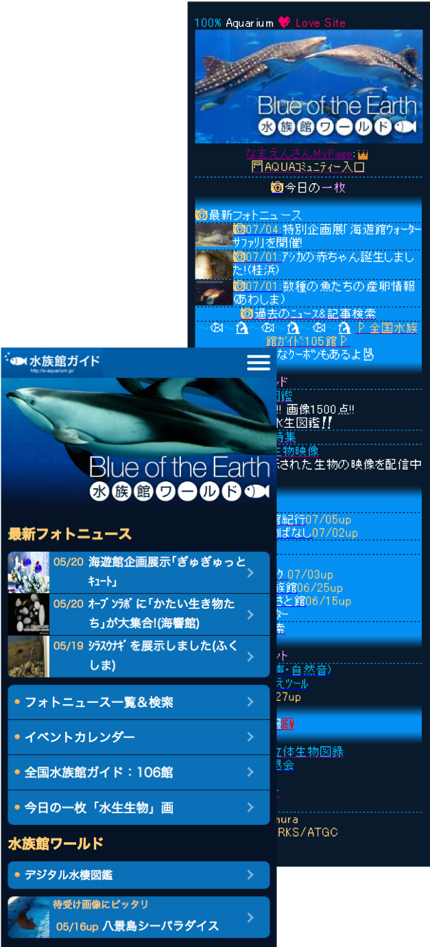 学術系情報も備えた水生生物好きの為のモバイルサイト。